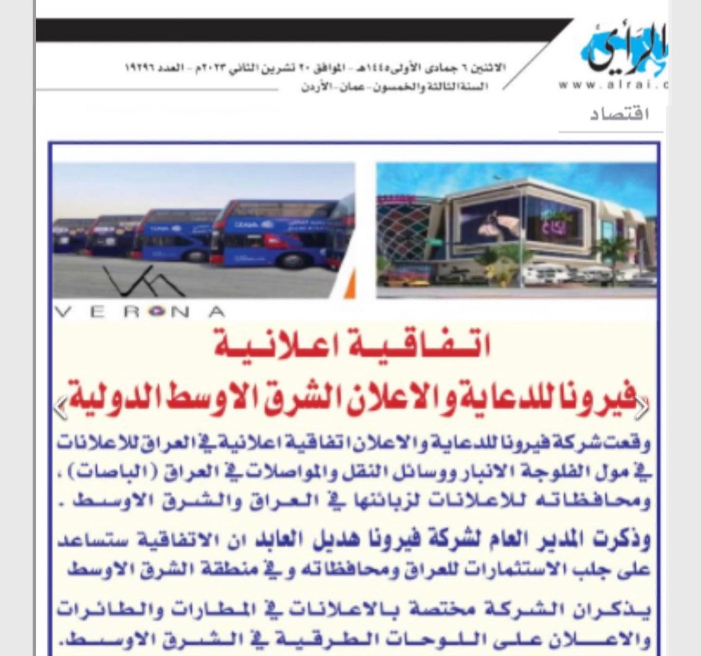 توقيع اتفاقية اعلانية في العراق لمول الفلوجة والباصات